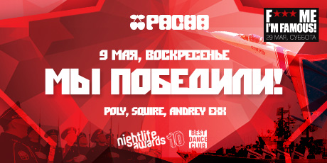 <p> Pacha Moscow отдает дань памяти участникам Великой Отечественной и вместе со всей страной празднует День Победы.<b> </b> <br>Принято считать, что кульминацией Дня Победы является праздничный салют, залпы из 30 артиллерийских орудий. Но это не совсем так. Этот салют даст сигнал к началу вечеринки “Мы победили!”, посвященной этому великом дню. <br>Pacha Moscow почти официально присоединяется к культурной программе этого великого дня. Расположение в самом центре Москвы, в шаговой доступности к Красной Площади, диктует свои правила игры. Всего в городе в этот день пройдут около 150 праздничных мероприятий, и клуб оказался практически в эпицентре праздника. Красная площадь, Лубянка, Театральная, Тверская - где бы вы не оказались в этот вечер настоящий клаббер, все дороги неизменно приведут его в Pacha Moscow. <br> <br><b>9 мая, воскресенье (23.30 - 6.00)</b><br><b>Мы победили!: Poly, Squire, Andrey Exx</b><br><b>Вход: бесплатный, face control</b><br> <br> </p><div style="clear: both"></div>