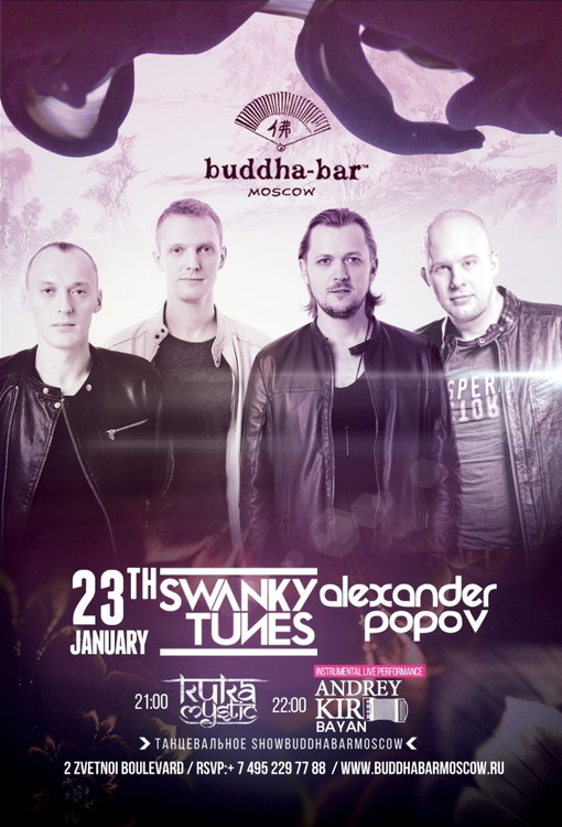 В пятницу гостей Buddha-Bar Moscow захлестнет ритм большого города. В стильных ди-джей сетах и инструментальном live-performance отразится феерия многогранного звучания и неповторимых музыкальных впечатлений. Вечер откроют эмоциональные house и lounge композиции в исполнении модного KUKA Mystic, которые приобретут уникальный объем и выразительность под выразительный аккомпанемент Andrey Kir Bayan. С каждым часом атмосфера ресторана будет все интенсивнее насыщаться ярким звучанием, и после полуночи настоящий фейерверк музыкальных эмоций вызовут экспрессивные выступления ди-джеев Swanky Tunes и Alexander Popov. Яркие акценты насыщенным ритмам вечера добавит выступление танцевального шоу BuddhaBarMoscow. Изысканная кухня фьюжн, утонченные авторские коктейли, притягательная атмосфера благополучия и исключительные музыкальные ощущения – лучшее сочетание для неповторимой пятничной ночи, эксклюзивно в Buddha-Bar Moscow!