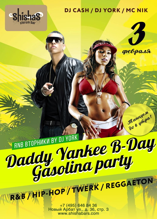 Daddy Yankee B-Day Gasolina Party в Shishas Sferum Bar! ЛЕГЕНДАРНЫЕ R’N’B ВТОРНИКИ by DJ YORK!