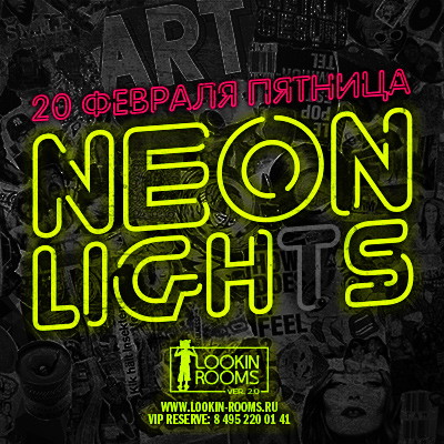В пятницу LOOKIN ROOMS приглашает Вас на яркую вечеринку NEON LIGHTS, вечеринку, которая отправит нас на улицы с яркими вывесками, шумными компаниями и новыми встречами. Ждем Вас в LOOKIN ROOMS