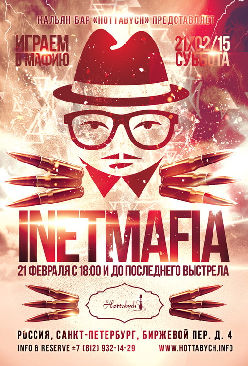 21 февраля, в 18:00 состоится открытие нового клуба Inetmafia//Санкт-Петербург. Приглашаем вас на интересные игры с приятной атмосферой в кальян-баре Hottabych по адресу Биржевой переулок д. 4.