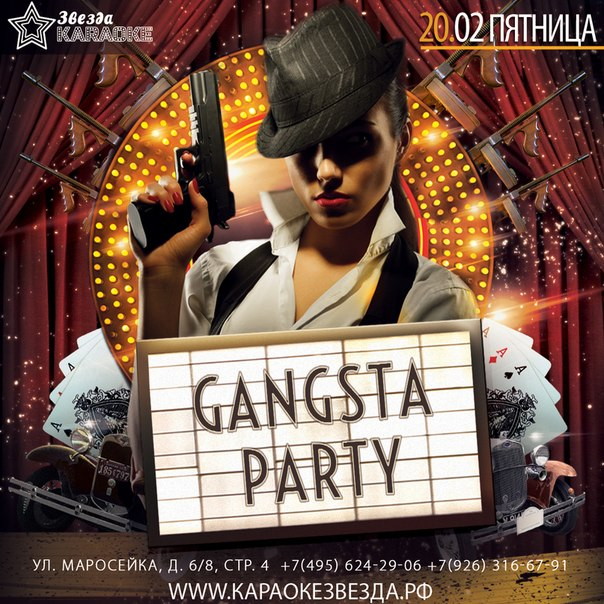 Вас ожидает развлекательная программа,живой SAXAFON,песни от гангстеров и подарки от клуба!