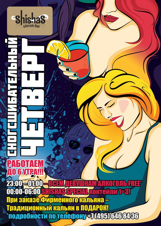 ЧЕТВЕРГ – СНОГСШИБАТЕЛЬНЫЙ ЧЕТВЕРГ в SHISHAS SFERUM BAR на Новом Арбате д. 36! Желающим начать выходные в ЧЕТВЕРГ посвящается! Эксклюзивная вечеринка для всех, кто очень старался, но.... не дотерпел до пятницы!