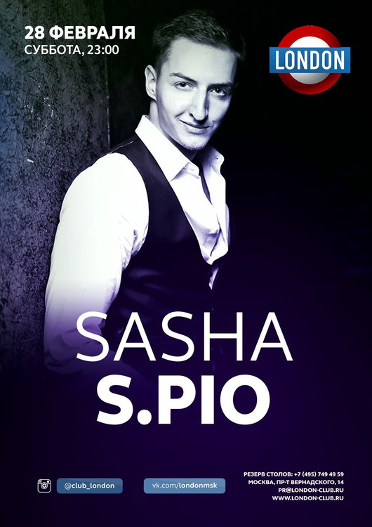 Sasha S.PIO - музыкальный директор легендарного клуба Москвы THE ARTIST, а также резидент и частый гость клубов самых топовых заведений.