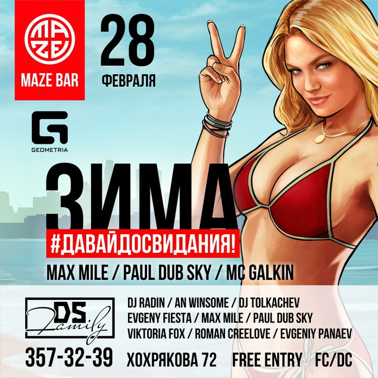 28 февраля в ★ MAZE BAR | МЕЙЗ БАР ★! Встречаем красотку Весну в последний день уходящей зимы под яркие зажигательные сеты диджеев, участников и резидентов DS Family: MAX MILE и PAUL DUB SKY.