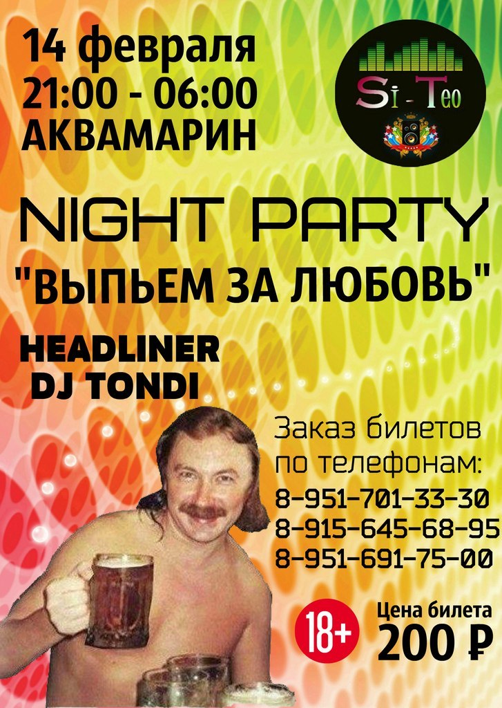 14 февраля в "Аквамарине" с 21-00 до 06-00 состоится night party "выпьем за любовь"