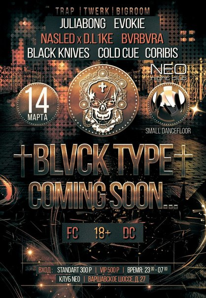 Мы открываем серию истинного безумия в стенах клуба NEO и имя этому безумию † BLVCK TYPE † coming soon