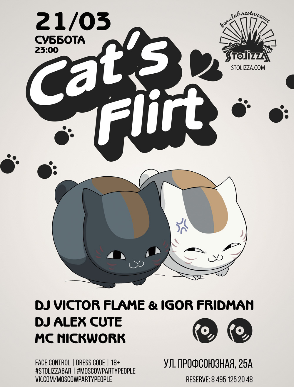 Гармоны бурлят, сердце бьется намного чаще и голова не может думать ни о чем, кроме…. Это весна! Только в BAR "STOLIZZA" / БАР "СТОЛИЦА" ты найдешь ответы на все свои вопросы. Флиртуй, влюбляйся и наслаждайся жизнью вместе с командой MOSCOW PARTY PEOPLE | we create your holidays. Настало время охоты грациозных кошечек на отвязных котов. В эту ночь свободные, самые красивые и невероятно притягательные люди соберутся вместе, чтобы взять от жизни все. Забудь про слово «нет»! Отбрось предрассудки и будь смелей. Не упусти свой шанс реализовать свои мечты в реальность!
