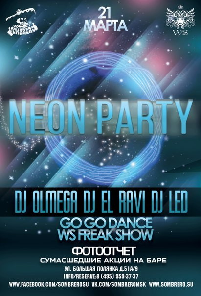 Светодиодное фрик-шоу от команды WS, подтанцовка от лучших Go - Go Ladies Москвы, лучшая музыка от DJ OLMEGA и DJ EL RAVI.