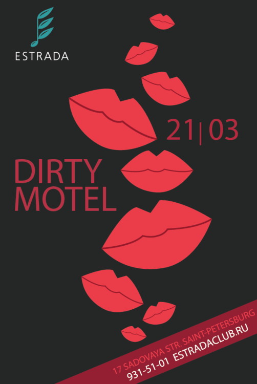 В эту ночь вас порадует самая грандиозная и приватная атмосфера! Откройте все свои тайные желания и фантазии. Хотите попасть на самую отвязную вечеринку года? Встречаемся на DIRTY MOTEL в ESTRADA.