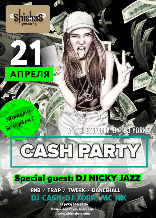 CASH PARTY в Shishas Sferum Bar! ЛЕГЕНДАРНЫЕ R’N’B ВТОРНИКИ by DJ YORK!