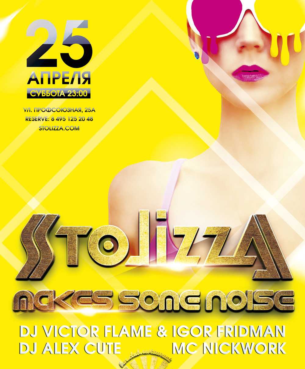 Эта ночь содрогнется от громогласных ритмов лучших диджеев проекта MOSCOWPARTYPEOPLE: DJ VICTOR FLAME, IGOR FRIDMAN, DJ ALEX CUTE! Давайте выплеснем эмоции и раскачаем STOLIZZA BAR! Прокричим во весь голос, что мы есть, и насладимся безграничным саундом!