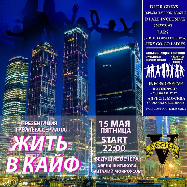 Вечеринка от создателей сериала ЖИТЬ В КАЙФ. Презентация трейлера. Специальные гости: Dj's Dr.Greys и All inclusive.