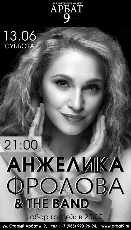 13 июня собираемся в 20:00, потому что у нас выступает АНЖЕЛИКА ФРОЛОВА - крайне яркая личность из нового поколения музыкантов, композиторов и вокалистов, сочетающая красоту с искренностью чувств, талантом и редкой харизмой!