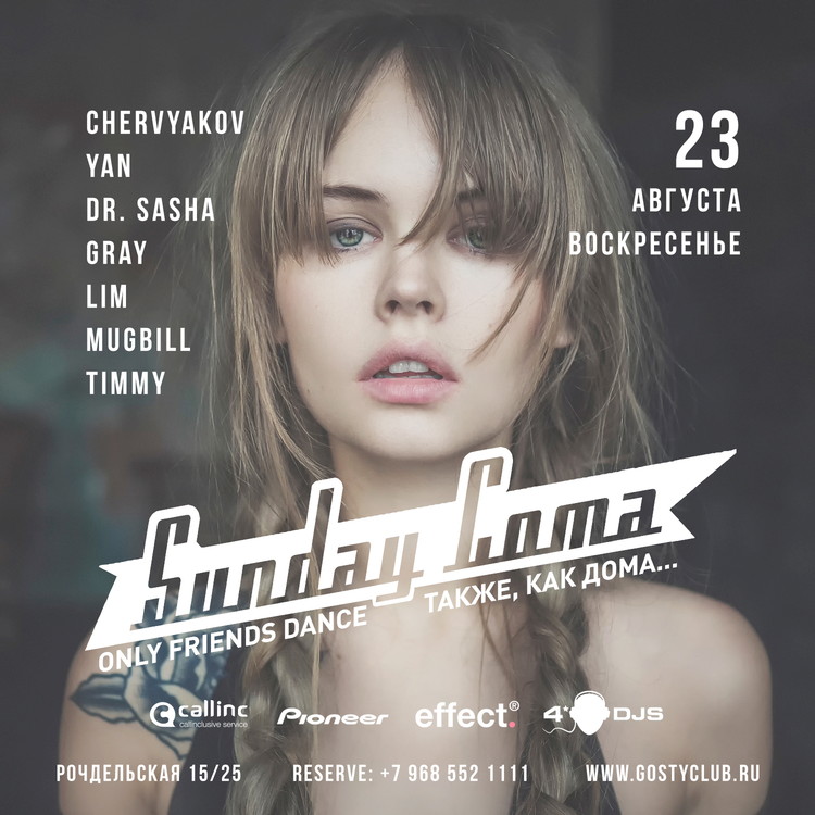 Sunday Coma – Не имеющий аналогов воскресный праздник без рамок и границ для всех, кто ищет продолжение пятнично – субботнего танцевального безумия в компании близких друзей. Команда создателей самых популярных Afterparty Москвы в который раз подтверждает свою способность расширять праздник в пространстве и времени! Теперь мы позволим вам веселиться вплоть до понедельника, перешагнув через все негласные правила клубного досуга. Но никаких привычных условностей! На Sunday Coma мы отдыхаем вместе с вами. Диджей в центре танцпола, абсолютный мультистайл (от дип-хауса и нью-диско до тек-хауса и техно), полный релакс и чистая импровизация. Особенность и уникальность вечеринок Sunday Coma в том, что здесь в одном месте собираются люди, чей маршрут на уходящий уикенд может пролегать через совершенно разные клубы и события, но непременно приводит их в привычную атмосферу The Gosty, где рады всем и каждому практически круглые сутки.