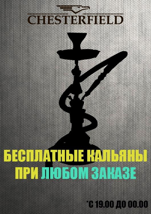 Бесплатные кальяны при любом заказе! С 19.00 и до 00.00!