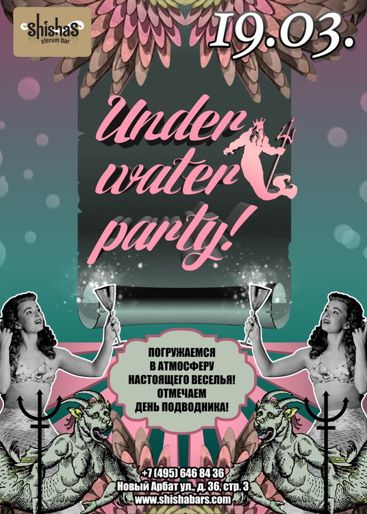 Under water party в Shishas Sferum Bar на Новом Арбате! Погружаемся в атмосферу настоящего веселья! Отмечаем День Подводника!