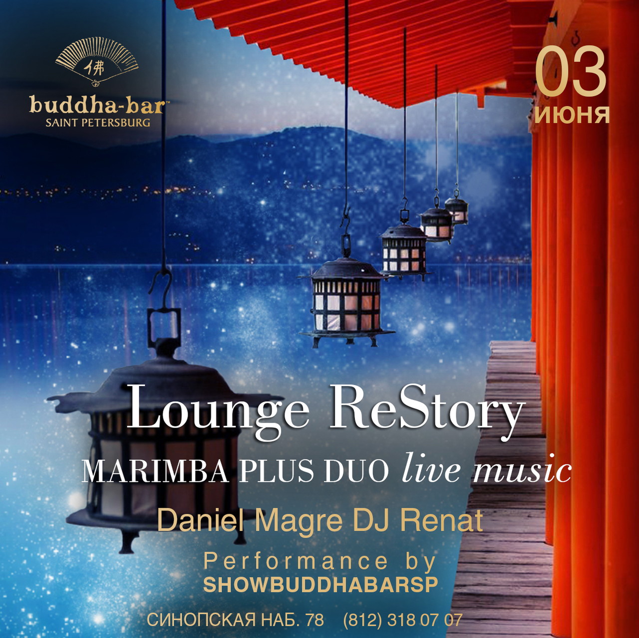 Lounge ReStory вечерняя программа в ресторане Buddha-Bar St.Petersburg: музыкальный дуэт MARIMBA PLUS DUO live music - виртуозное сочетание академической изысканности, этнических ритмов музыкального инструмента маримба с джазовым вокалом и современными музыкальными тенденциями.