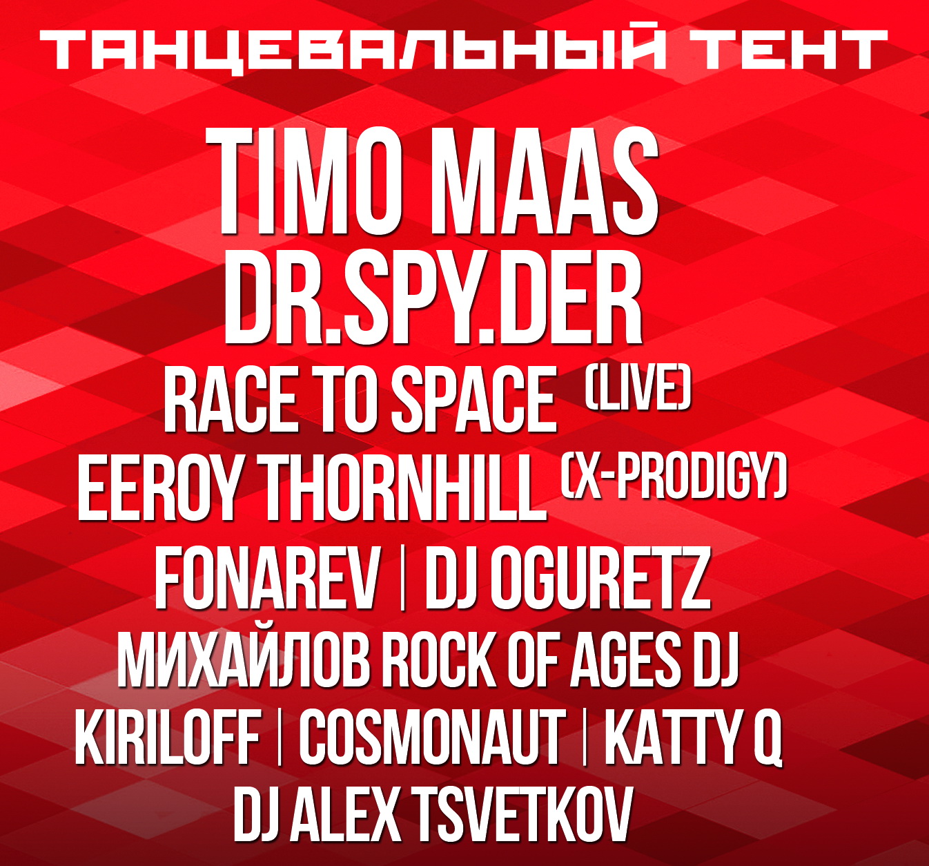 Fonarev, Kiriloff, Dr.Spy.der, Cosmonaut, Timo Maas, Цветкоff, Константин Михайлов aka Rock of Age, Oguretz, Leeroy Thornhill, Race to Space