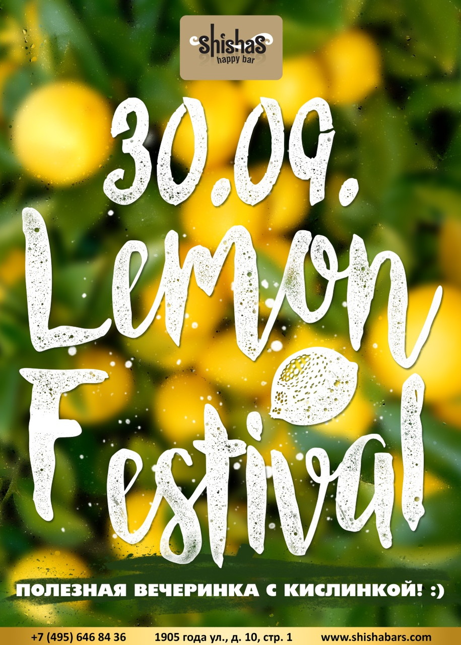LEMON FESTIVAL в Shishas Happy Bar на 1905 года! Полезная вечеринка с кислинкой! :)