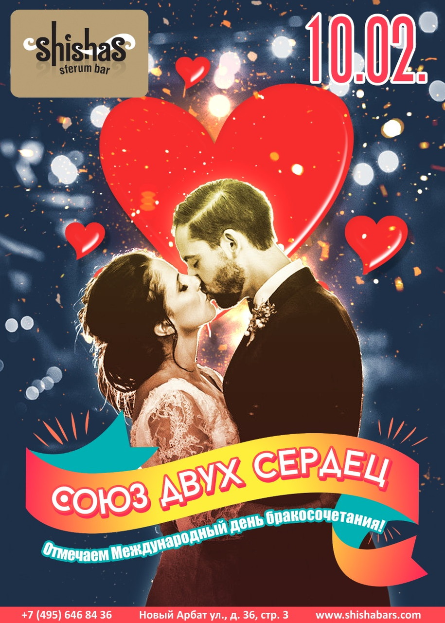 Союз двух сердец в Shishas Sferum Bar на Новом Арбате! Отмечаем Международный день бракосочетания!