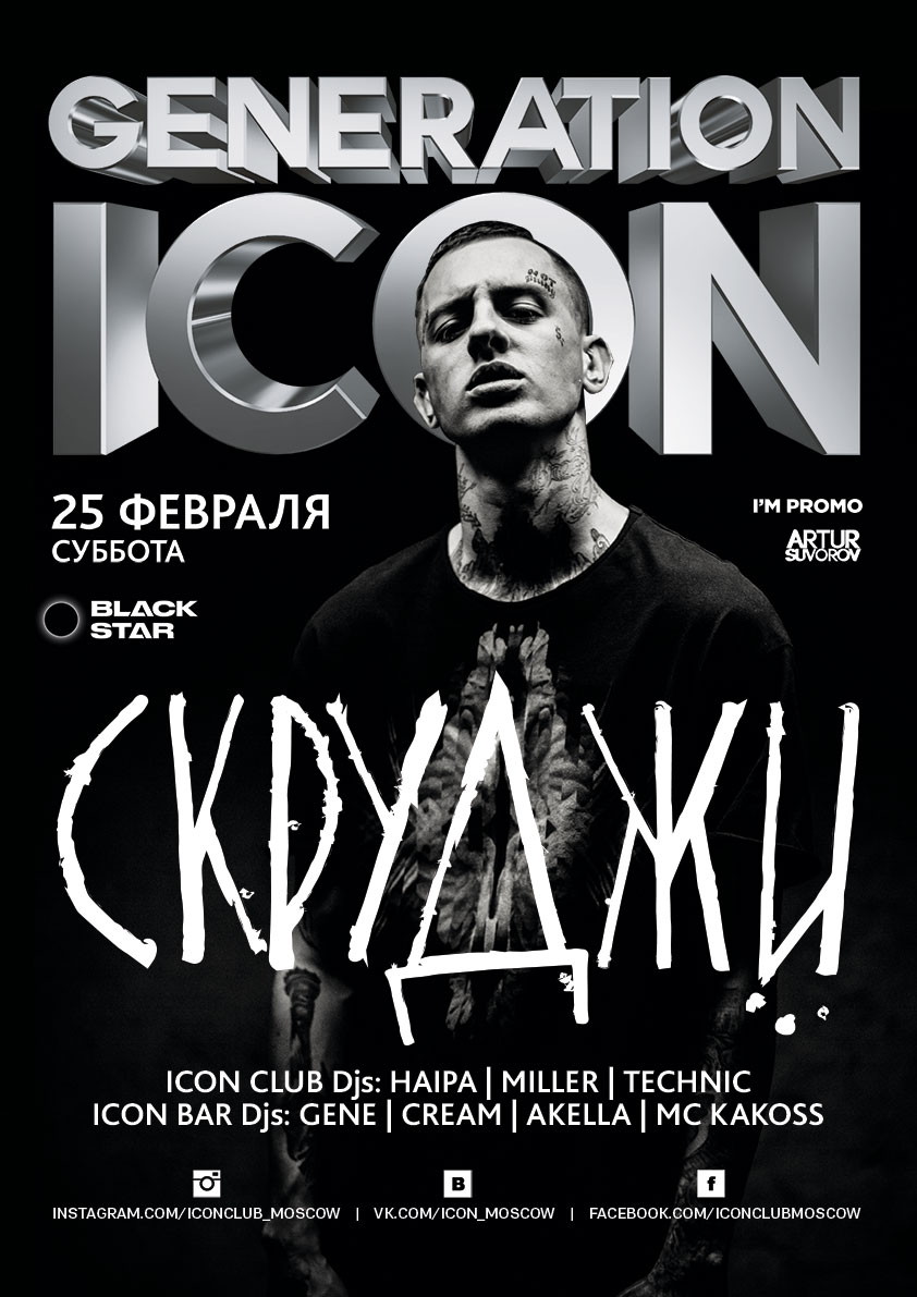 25 февраля хедлайнером вечеринки GENERATION ICON в клубе ICON станет новая звезда лейбла Black Star - СКРУДЖИ.