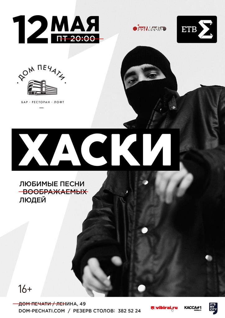 1 апреля выходит долгожданный новый альбом Хаски «Любимые песни (воображаемых) людей». Сам артист обещает на диске отсутствие проходных песен и «много всего разного и необычного». 12 мая рэпер будет презентовать пластинку уральской публике. Встречаем Хаски с одним из самых ожидаемых отечественных рэп-релизов года в Доме Печати!