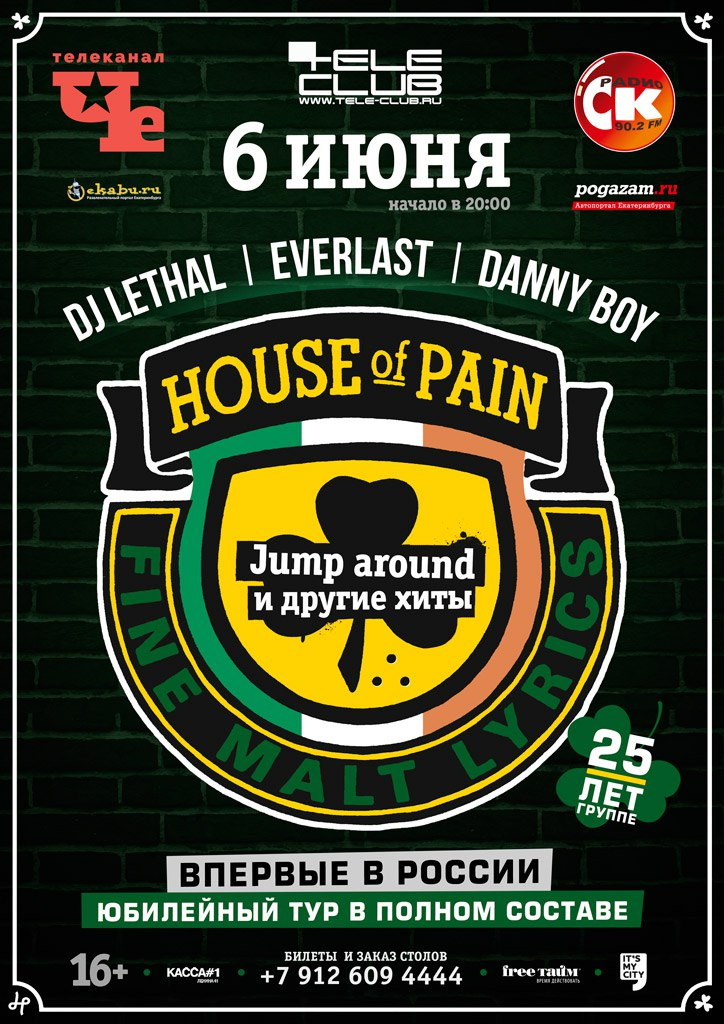 Сольные успехи и достижения участников House of Pain, конечно же, нашли своих поклонников, и в какой-то момент фанаты уже отчаялись ждать реюниона культовой команды. Но, ликуйте, он случился! Легендарная группа объединилась только ради единственного тура, в рамках которого едет с большим концертом в Екатеринбург. Полным составом! Впервые за долгие 20 лет… 6 июня House of Pain дадут большой концерт в Телеклубе. Не упустите уникальный шанс вживую услышать лучшие хиты House of Pain, которые перевернули hip-hop с ног на голову!