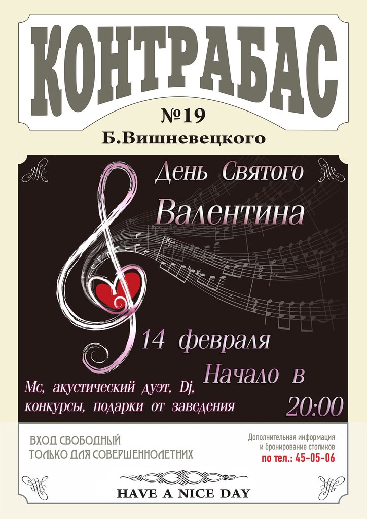 РегистрацияДень Святого Валентина в Контрабасе !!!