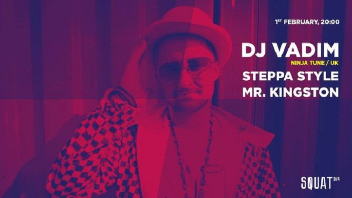 1-го февраля в клубе Squat 3/4 состоится выступление англичанинаDJ Vadim известного благодаря работе со Stevie Wonder, SBTRKT, Prince, Public Enemy, DJ Krush, Foreign Beggars, Demolition Man, Fat Freddys Drop и многими другими, а так же релизами на Ninja Tune, BBE и собственном Jazz Fudge.