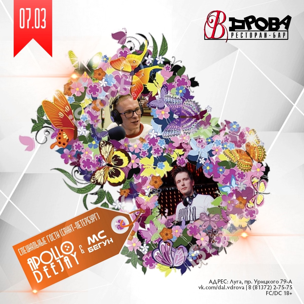 Гости из Санкт-Петербурга поздравят с главным женским днём - APOLLO DEEJAY и MC Бегун! Конкурсы, подарки и розыгрыш большого приза!