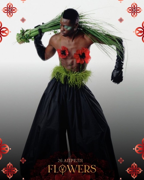Расшитые нитями и соцветиями пиджаки, рубашки и набедренные повязки из органзы, штаны-зуавы и алые пиджаки-пальто, бутоны во всевозможных местах и невероятные шляпы, афро-шик и евро-безумие, травяной беспорядок и пестиковая анархия!