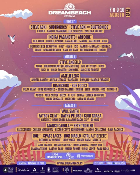 Dreambeach 2025 собрал более 90 артистов, представивших разнообразные жанры и стили электронной музыки. Фестиваль прошел в живописном месте Retamar - El Toyo, и его посетило свыше 90 000 человек. Среди участников фестиваля были такие имена, как Steve Aoki, Subtronics, Amelie Lens, Steve Angello и многие другие.
